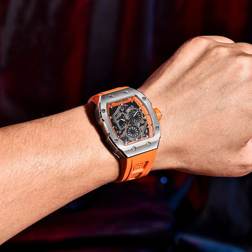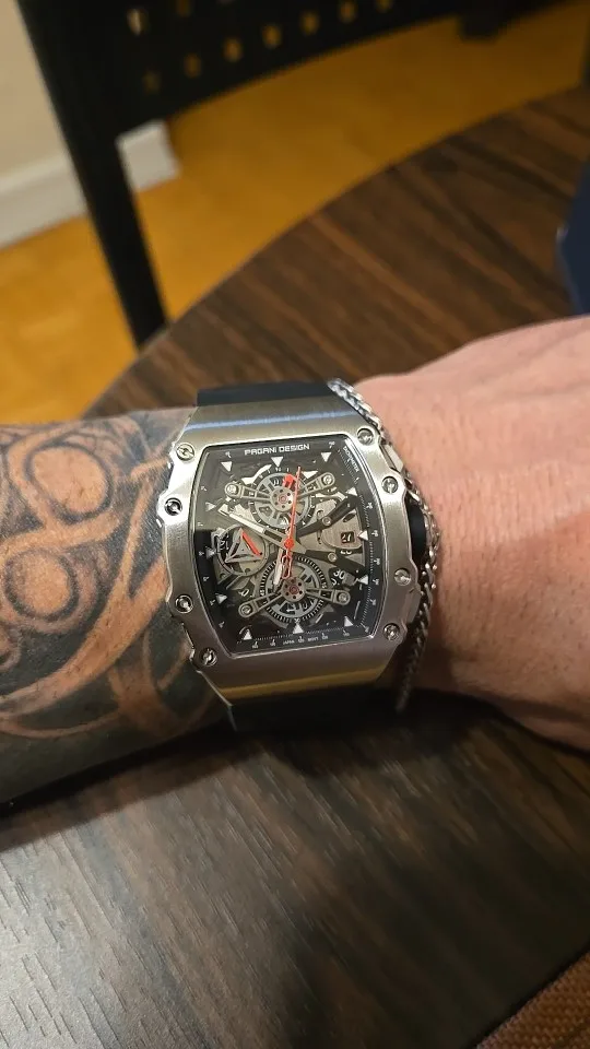 The Monka PD-YS011 makes a bold impression with its tonneau-shaped stainless steel case and numberless dial under sapphire crystal. With luminous hands, anti-magnetic protection, and water resistance to 5ATM, it’s made for those who prefer clarity over clutter.